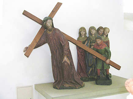 Kreuztragender Christus Christus auf dem Kreuzweg mit Simon von Kyrene, aus dem Kreis Hans Multschers, um 1440