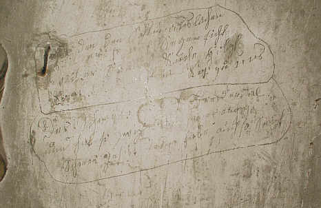 Aufschriften auf wiederverwendeten Türen können unter Umständen Hinweise auf Zusammenhänge geben.