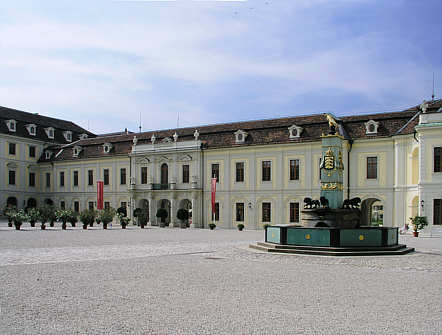 Westliche Galerie, 1724 zur Schließung der alten Dreiflügelanlage um den Innenhof angefügt.