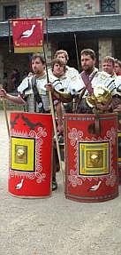 und in der Ausrüstung eines Legionärs zur Zeit des römischen Kaisers