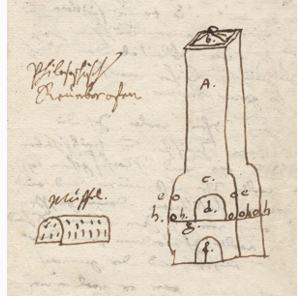 Skizze eines Reverbierofens von Lukas Osiander, um 1600 (Vorlage: