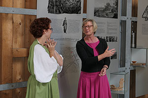 Finanzministerin Edith Sitzmann im Gespräch mit der Hüfinger Römerbad-Führerin Martina Schulz. Foto cmarcziniak/ssg