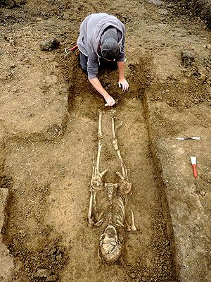 Freilegung eines frühmittelalterlichen Frauengrabs .