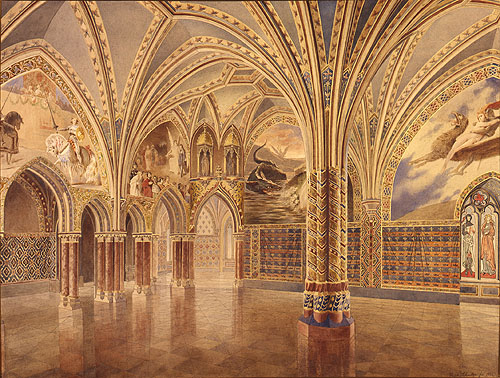Entwurfsskizzen für Schloss Falkenstein: Oben der Große Saal, Links und Unten das Schlafzimmer des Königs.