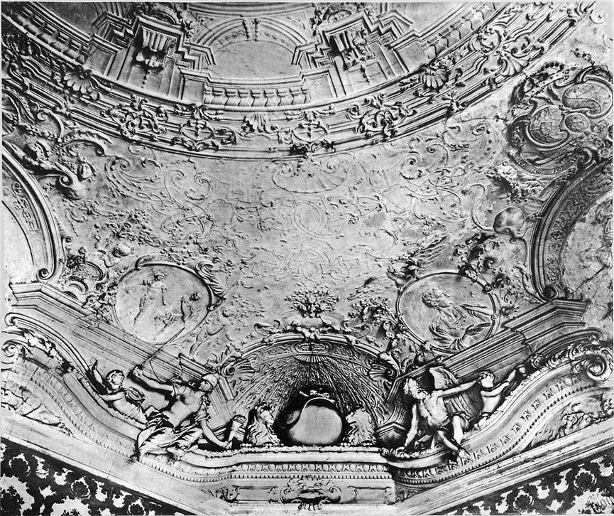 Stuckdekoration im Paradeschlafzimmer des Kurfürsten Carl Philipp. Foto vor 1940. Bild: LMZ/SSG