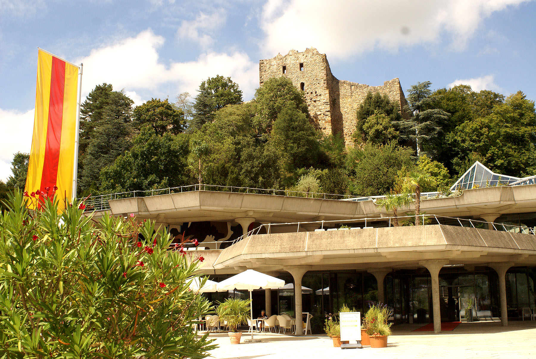 Am Fuße des Schwarzwalds inmitten des Markgräflerlands liegt der Wellness-Ort Badenweiler. Schon die Römer genossen hier in einer großen Thermenanlage Entspannung pur. Die römische Badruine Badenweiler ist heute Teil des beliebten Kur- und Schlossparks, dem neuesten Zuwachs bei den Staatlichen Schlössern und Gärten Baden-Württemberg. Das Areal gehört zu den baumreichsten Kurparks in Deutschland und misst 22 Hektar – zahlreiche Möglichkeiten also für ausgiebige Spaziergänge. Ein Rundweg, genannt Kaffeemühle, führt vom Schwanenweiher über die römische Badruine bis zum Kurhaus. Nimmt man auf diesem ein Kilometer kurzen Spaziergang durch den englischen Landschaftsgarten einen kleinen Abstecher zur Burg Baden erhalten Gäste bei klarem Wetter einen weiten Blick über die Rheinebene bis hin zu den Vogesen.