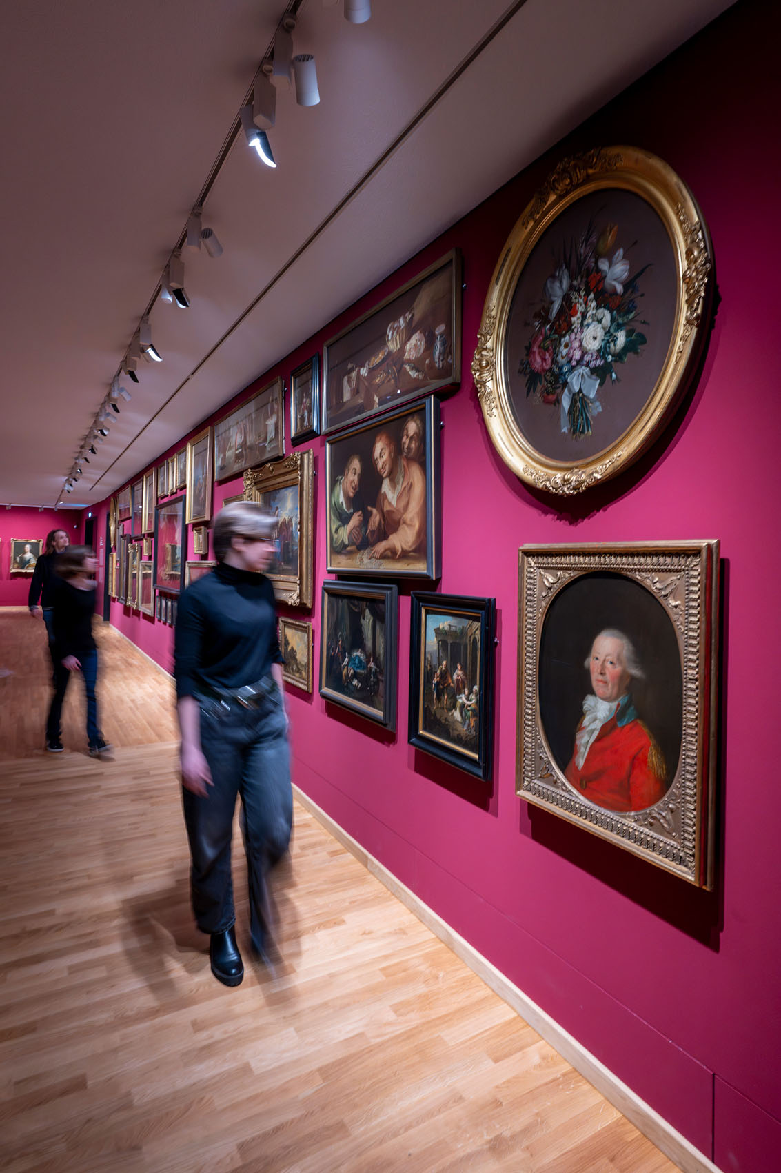 Pompöse Pracht, theatralische Inszenierungen, bewegte Kompositionen und eine große Bandbreite an Themen, von der Mythologie über Landschaft und Stillleben bis zum Porträt – all das erwartet Besucher*innen der Barockgalerie, die Malerei von 1600 bis 1800 zeigt. Wie zur Entstehungszeit üblich, präsentieren sich die Gemälde in dichter Hängung neben- und übereinander.