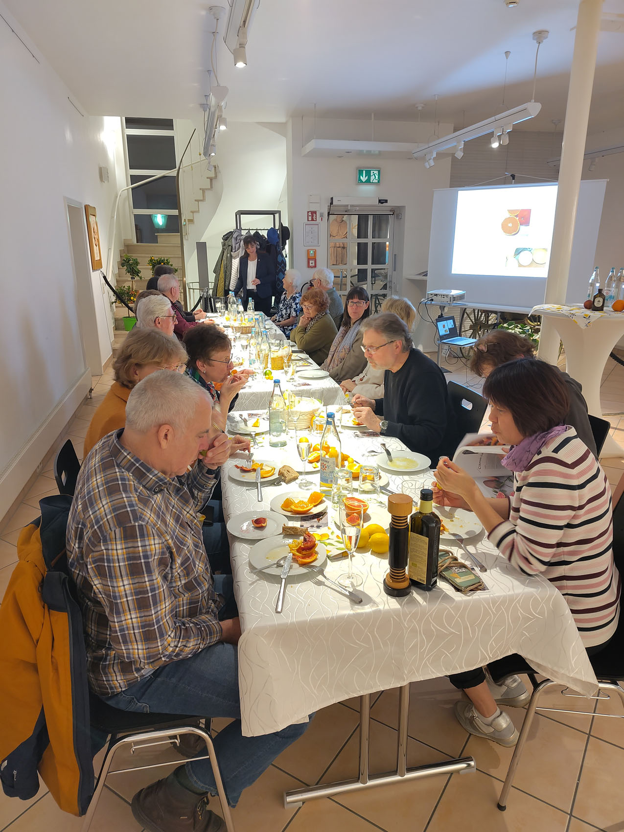 (tisw) Knalliges Orange, sattes Gelb und leuchtendes Grün sorgten im Karl-Wörn-Haus für einen farbenfrohen Kontrast zum winterlichen Grau: Mit einer stimmungsvollen Veranstaltung rund um die Geschichte und Kultur der Zitrusfrüchte klang die Saison der beliebten Früchte im Rahmen der Reihe „Museum frei Haus“ aus.