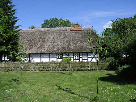 Typisches Niederdeutsches Hallenhaus, ausgeführt als Zweiständer-Fachwerkhaus,