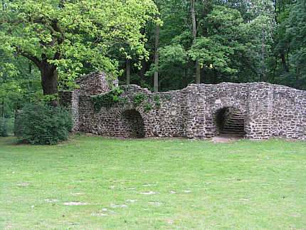 Künstliche Ruine, Ende 18. Jh., von J.J. Busch. Die Treppe rechts im Bild führt zur oberen aufgeschütteten Plattform.