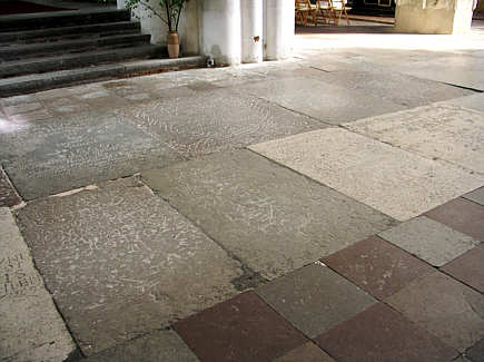Bodenplatten, vor allem des 18. Jahrhunderts, bezeichnen die Erbbegräbnisse