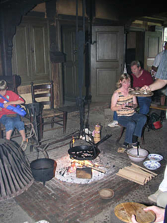 Diele mit Rauchherd Offene Feuerstelle, um die herum die Bauersleute ihren Platz nahmen.