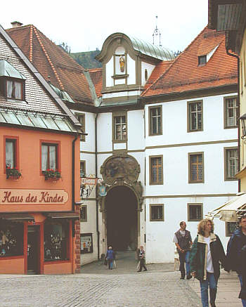 Eingang des ehemaligen Benediktinerklosters St. Mang (heute Rathaus und Stadtmuseum)