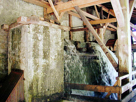 Gipsmühle, Pöllatschlucht (Schwangau) Wasserzulauf durch einen Wasserturm, der den Austritt des Wassers aus einer unterirdischen Röhre bildet. |