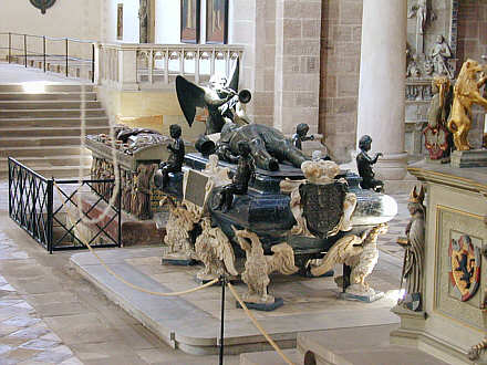 Hochgrab des Markgrafen Joachim Ernst, begonnen 1626, vollendet 1712 Marmorsarkophag des Bayreuther Bildhauers Abraham Graß, 1634 aufgestellt, bronzene Bildnisfigur des Markgrafen von dem Nürnberger Bronzegießer Georg Herold. |