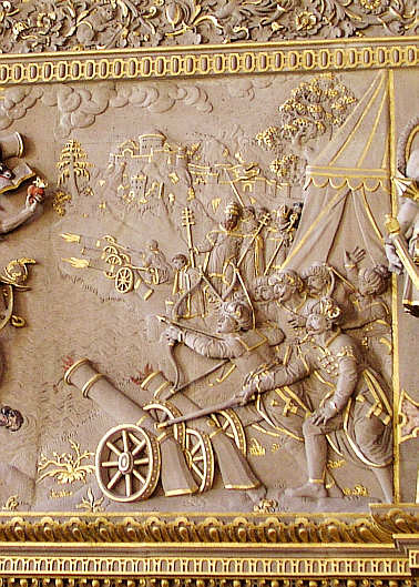 des Bildfeldes: angreifende Türken, die ihre Geschütze