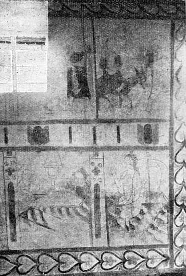 Wandmalereien an der Nordwand der Kirche zu Oberschüpf, östliches Drittel der Wandbemalung (restauriert)