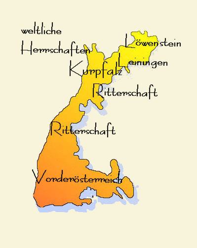 Das Oberland, das heute noch so genannte Markgräflerland, gehörte zu Baden-Durlach - zwischen beiden Teilen lagen ausgedehnte Herrschaftsgebiete der Landvogtei Ortenau und Vorderösterreichs.