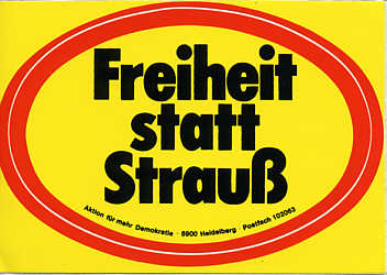 Aufkleber der Anti-Strauß-Bewegung: Freiheit statt Strauß