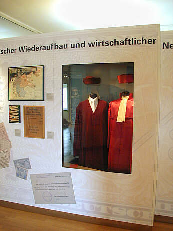 Ausgestellt sind Dokumente der Besatzungszeit In der Vitrine die Richterroben aus dem neu errichteten Bundesverfassungsgericht