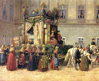 Der Brautwagen, begleitet von Brautjungfern in Rippoldsauer Tracht |