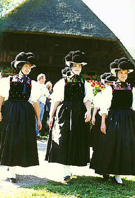 Eine realistische Alternative zum roten Bollenhut, den nur die unverheirateten jungen Frauen tragen, ist der schwarze Bollenhut der verheirateten Frau. Aber er ist nicht so malerisch. |