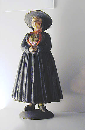 Hotzenwälder Bäurin mit Krempenhut, geschnitzte und bemalte Holzfigur, um 1810