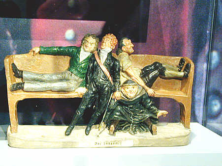 Karikaturistische Darstellung mit Personifikation des Bürgertums, der Beamtenschaft, des Arbeiterstandes und des Klerus