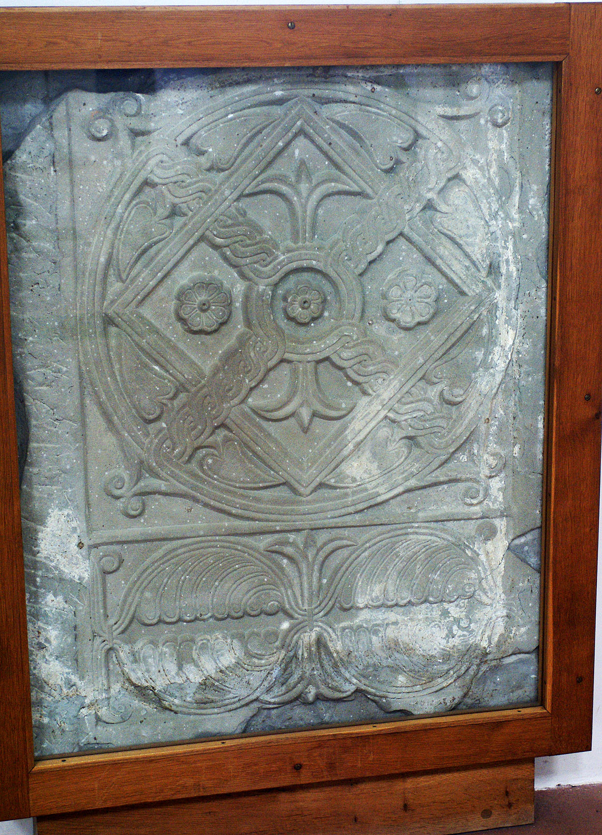 gegründeten Kirche. Die Platte zeigt langobardisch-oberitalienische
