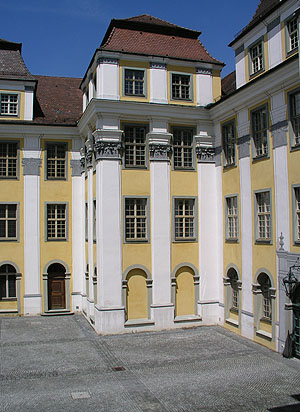 Oben: Neues Schloss Tettnang, Gartenseite