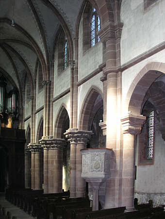 Die romanischen Arkaden sind zwar schon spitzbogig gebrochen, bestehen aber aus