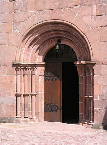 romanisches Stufenportal führt in die Prioratskirche, in die