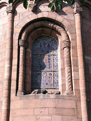 Chorfenster zwischen zwei Halbsäulen hat ein in die Mauerstufe