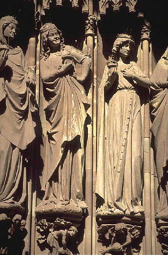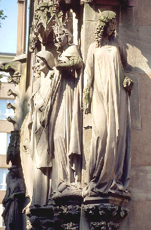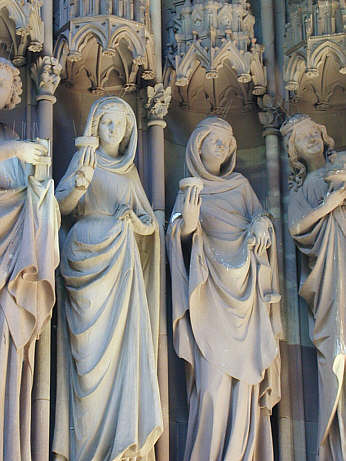 die Figuren von Ecclesia (Mitte) und Synagoge (rechts) wurden