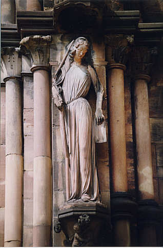 Sandsteinskulptur am linken Portalgewände, um 1225
