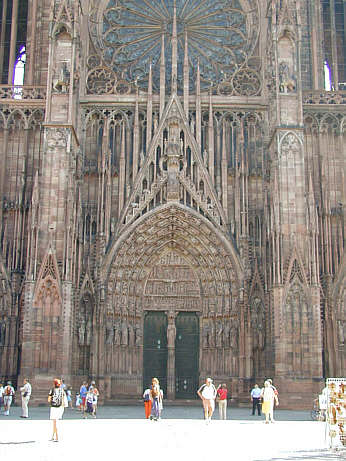 Tympanon. Fünf Bogenränge, in deren unterem Teil Prophetenstatuen