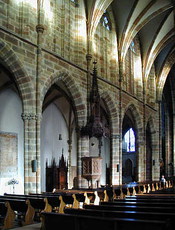 die eigentlichen Fenster wegen des Querschiffdachs nur sehr klein sein können.