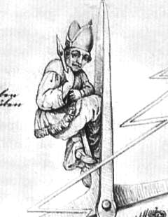 An den Zeiger der Waage klammert sich ein opportunistischer Priester und erklärt, der Macht und der siegreichen Partei zu folgen. |