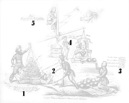 Diese Karikatur über die Schwäche der Revolution enthält 10 Einzelheiten. Formulieren Sie die in den Einzelszenen deutlich werdenden Aussagen. |