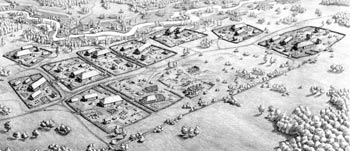 Rekonstruktionszeichnung der frühmittelalterlichen