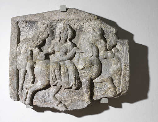 Bregenzer Epona Sandsteinrelief; Darstellung der keltischen Göttin Epona, im klassischen Stil seitlich auf einem Pferd sitzend dargestellt 1./2. Jh. n. Chr., aus dem Tempelbezirk von Brigantium. © VLM