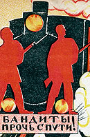 Icon links oben: Banditen, geht aus dem Weg. 1921. Farblithografie auf Karton