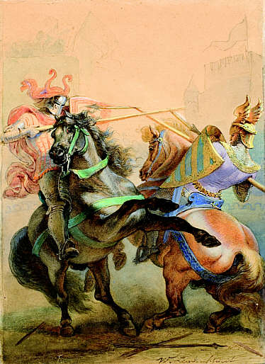 Idealisierende Darstellung des 19. Jahrhunderts. Beide Lanzen