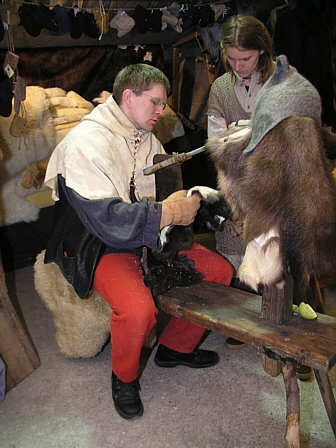 das Leder, das er vom Gerber bekommen hat, so auf, dass