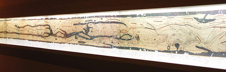 Tabula Peutingeriana, die Straßenkarte des spätrömischen Reiches. Sie bildet die Hauptstraßen des Imperiums ab
