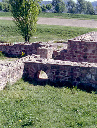 HypokaustheizungFeuerstelle für die Erzeugung der heißen Luft, die dann in den Hohlräumen unter dem Boden und in der Wand entlangstrich und den Raum beheizte. Die technische Beschreibung der Heizung selbst finden Sie bei der Rekonstruktion einer Hypokaustanlage im Reiss-Museum Mannheim