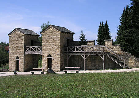der Ergebnisse der Grabungen das Westtor rekonstruiert.