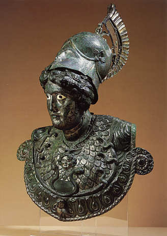 Die Büste ist aus Bronzeblech getrieben und war teilweise