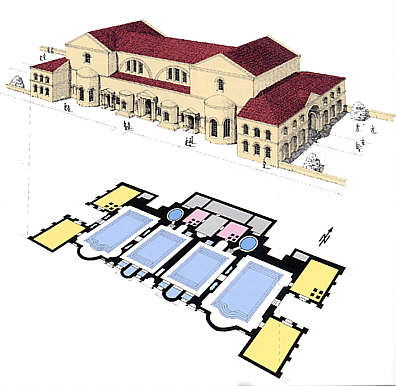 umgebaut. Die Apsiden der ehemaligen Umkleideräume wurden