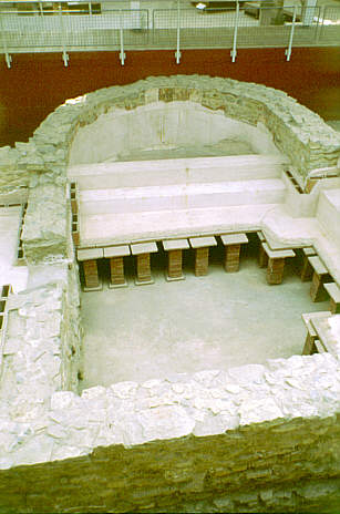 die erhaltenen Reste des Bads: Vorn Heißluftraum mit